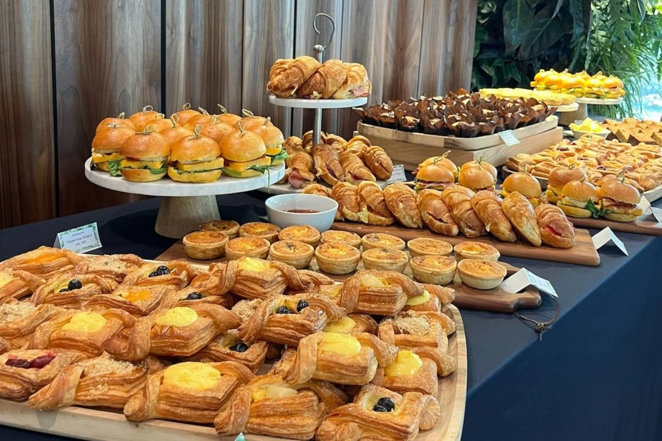 Customise your orders with a selection of breakfast, lunch, and afternoon tea items. Start the day with seasonal granola or bircher cups, egg wraps and sliders, fresh danish, or savoury mini croissants, paired with filter coffee, sparkling water, or juice.
